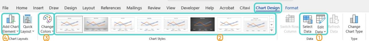 - In the “Chart Design” toolbar