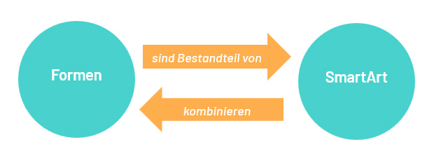 Mit der SmartArt-Schaltfläche kannst du mehrere Formen einfügen, die bereits miteinander verknüpft sind und sich z. B. für die grafische Darstellung von Prozessen oder Beziehungen eignen.